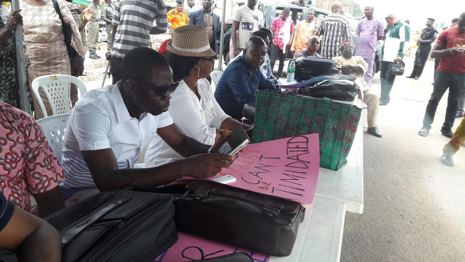 The members who came prepared for arrest with their traveling bags to the spot of the sit down protest vowed to remain at the spot for the whole day. They promised to support Governor Fayose with whatever it takes, including sacrificing their lives saying this is 2016 and not 2006.